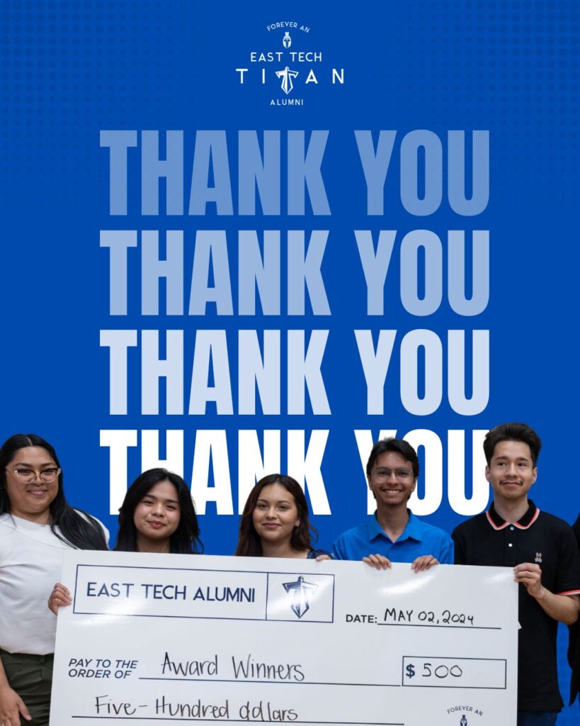 These awards, which will be presented this coming May, provide vital financial support to our graduating seniors as they transition from East Tech to the next chapter of their lives.